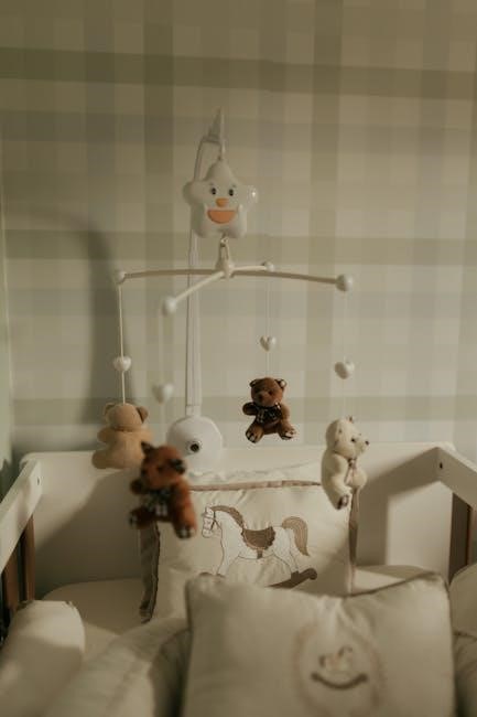 Verify that the toy bar is firmly attached and doesn’t wobble. Regularly check the connections to prevent accidental detachment during use. The toy bar is designed to stimulate your baby’s senses and encourage development. Refer to the manual for specific instructions related to your model, especially regarding battery installation for sound and light features.